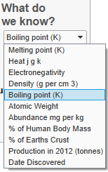 I knew my job was going to be much easier if I could find a nice big fat table of data. So, after doing a google search for ‘Wikipedia table’ I quickly came across many results for ‘Periodic Table’. After just a few minutes of clicking around I could see the potential of the various different ways of slicing and dicing and measuring the 119 different chemical elements. I also thought that this kind of information might have universal appeal to anyone who has ever done high any school chemistry before. (i.e. craploads of people)